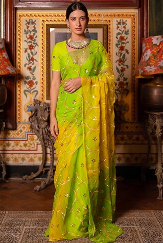 The soft texture and subtle gorgeousness of chiffons make them ideal for fashionistas, whose style aesthetic is classic and understated. Chiffon sarees are available in various colours and embroideries, from elaborate gota-patti to jaal work or the classic mukaish.