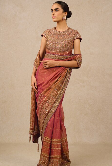 Weddings hold immense significance in every individual’s life, and the cultural richness of Indian nuptials amplifies this importance dramatically. The cherished rituals, heartfelt promises, and the joyous gathering of families create a truly enchanting spectacle. As the wedding season approaches, it brings loved ones together and provides an opportunity to adorn oneself in the most exquisite attire. While many embrace fusion wear that seamlessly blends traditional and contemporary elements, many choose classic sarees‘ timeless elegance. This iconic silhouette has been a staple in the closet of every Indian woman for generations. Whether for a casual day or a special occasion, these six-yard wonders effortlessly captivate attention with their enduring charm and sophistication.