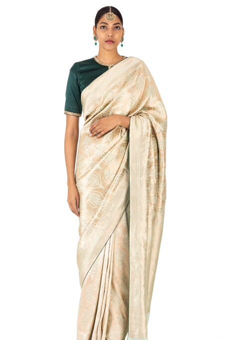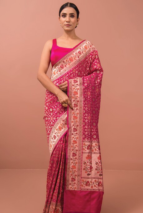 The esteemed Banarasi Silk Saree stands as a revered icon in the Indian textile industry. With exquisite craftsmanship and opulent appeal, these silhouettes effortlessly transcend time, making them an impeccable choice for any ceremonial affair. Therefore, a banarasi saree is a must have saree. From gracing the regality of Mughal emperors to adorning the nobility of aristocrats, this luxurious ensemble has been a major part of our ancestry. What distinguishes this beautiful apparel is its intricate motif work, each telling a tale with a profound resonance across cultures. In a symphony of threads, the Banarasi Silk Saree becomes more than a garment; it becomes a living narrative, weaving past, artistry, and grace synonymous with our heritage.