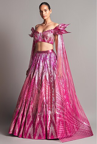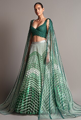 Euphor was launched with the idea of giving a fresh look to traditional Indian ethnic wear. The designer believes that bridal couture is often made by deriving inspiration from the sacredness of the rituals. Blending this idea with a more contemporary look, Amit Aggarwal has created ensembles that prioritise personal preferences and style above all. These lehengas from Euphor make up for the perfect bridal cocktail outfits.