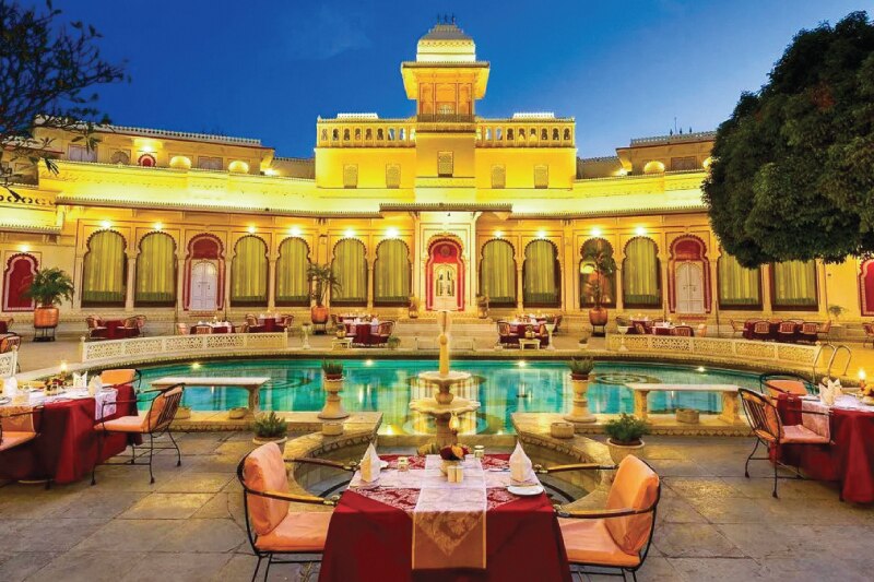 Built in the early 20th century during the reign of Maharana Fateh Singh, this lavish palace has been renovated into one of the most opulent luxury resort hotels in the country. The hotel was designed in traditional Rajput architectural styles, with classic glass mosaics, frescoes, ivory and mother-of-pearl inlay work, vivid chandeliers, and beautiful arched alcoves. The rooms are stunning on their own, but the true stunner is the Imperial suite-you’ll feel no less than a king in its opulence. The palace’s restaurant Paantya welcomes guests for a meal fit for a king-while it may serve a selection of dishes from across the world, local delicacies like lal maas and safed maas are usually their most sought-after.