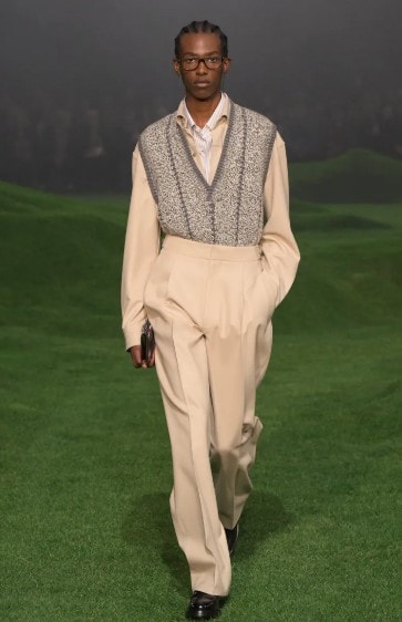 Pinstripes and plaids captured the louche elegance of the era, while wide-lapelled camel overcoats, high-waisted trousers and ribbed knits nodded to a bygone era injected with glamour. Eveningwear followed suit, with cocktail tailoring worn alongside velvet slippers. Described by Holloway as the result of “131 years of tailoring finesse”, – it was easy for us to see why.