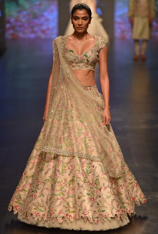 Dreamy bridal repertoire crafted in feminine cuts, a refreshing pastel palette, sedate floral prints and embellishments defines the fairy-tale appeal that the millennial brides seek these days. Besides, the high-octane drama of her fusion shararas, ruffle sarees, gowns and lehenga hybrids like anarkali-style cholis and capes are a must to invest in if your social calendar is full of wedding RSVPs. Whether you’re planning day nuptials in a sun-kissed setting at a palace, a garden wedding set up or a quintessential palace wedding, an Anushree Reddy bridal lehenga will charm in harmony with the dreamy surroundings. While a classic tailored Anushree Reddy lehenga is timeless trousseau piece every bride-to-be should invest in, her cutting edge versions are perfect for the bridesmaids to match her glory. Dressed in signature Anushree Reddy designs, the wearer can outshine everyone in the crowd.