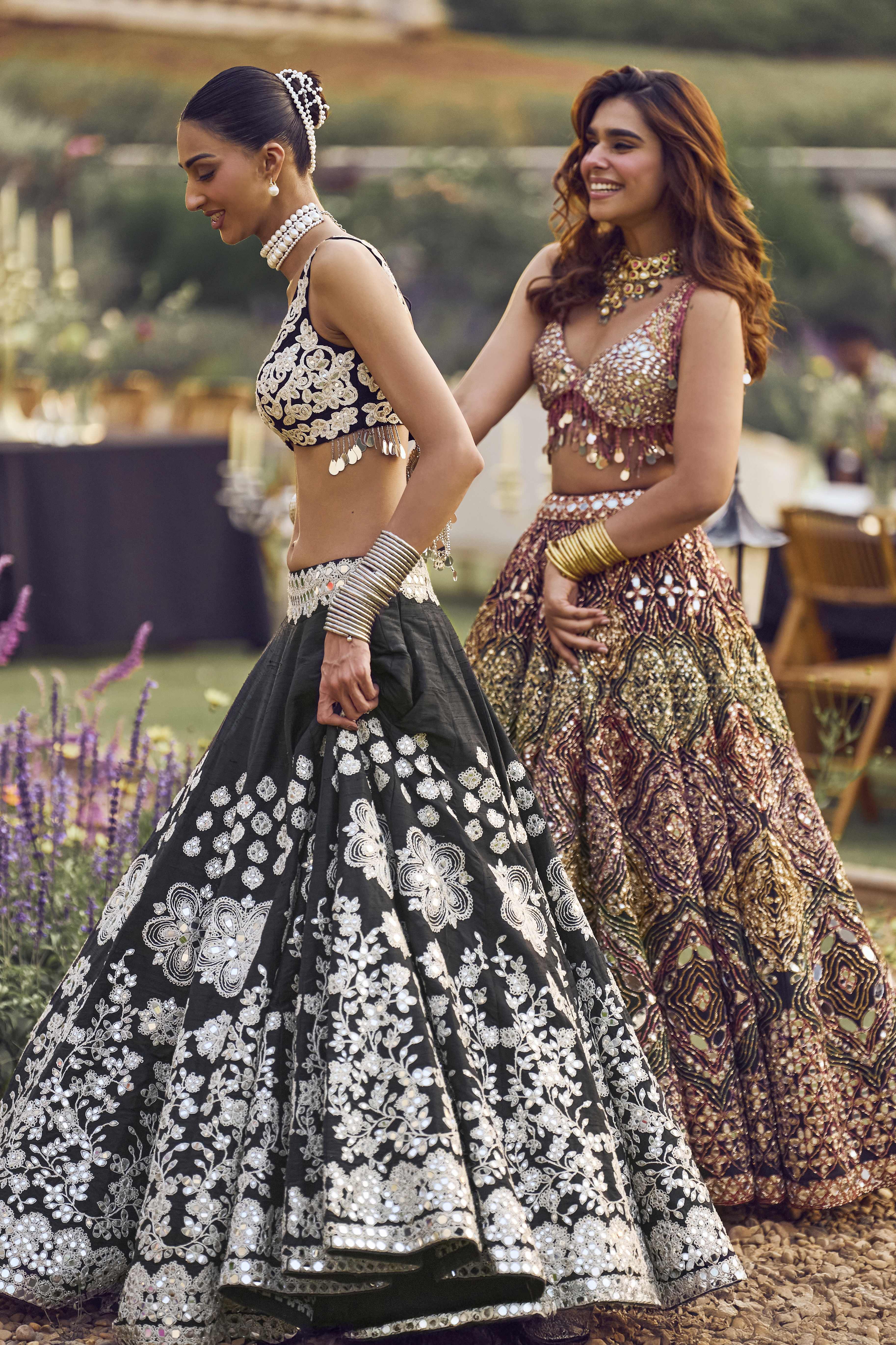 However, no matter how much the colour schemes keep changing for the modern brides and grooms, the heart and soul lie in the craft. While Mishra might incorporate a number of contemporary elements in his creations, his loyalty remains with his craft. On choosing mirror work as his signature technique, he shares, “I have always been fascinated by the history of mirror work, and spent countless hours researching its roots in Gujarat and Rajasthan. I love how it reflects light and joy, almost like poetry on fabric. Over the years, I’ve layered it with gota, threadwork, and tonal palettes to give it a contemporary spin. A recent example is my collection Tribe, inspired by the grace and resilience of the Kalbeliya community and the nomadic spirit of Rajasthan. Every design of mine is built around techniques that have been passed down for generations, and my role is to preserve that authenticity while adapting it to today’s sensibilities. For me, it is a tribute to artisanal traditions and a reminder that love, in all its forms, is timeless.”