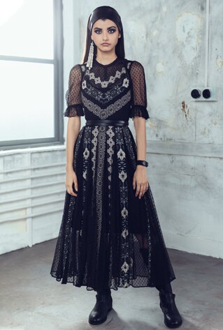 Gothic head-to-toe black looks have had a legacy in the street style sphere. Reprise monochrome looks with a new & now vibe choosing dressy silhouettes. Trade your slick leather pieces with wispy lace accents for a new spin.