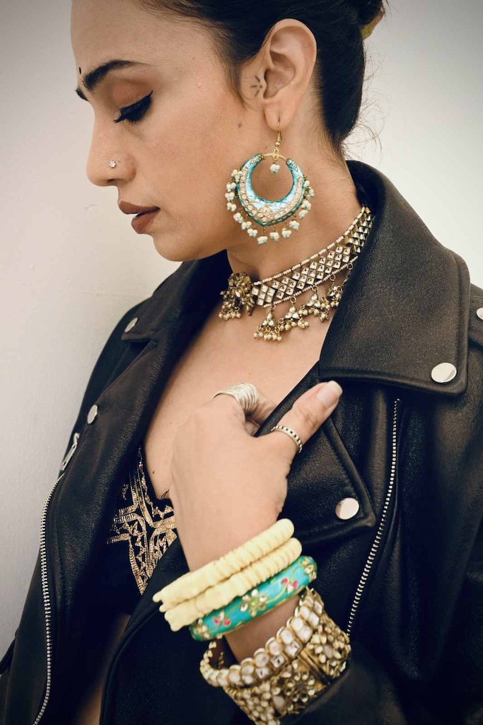 Repeating pieces of jewellery is not an alien concept to Toor who swears by her collectibles, including the intricate wrist charms, anklets and oxidised rings that are common factors in most of her looks. However, the term that the West has coined as bohemian owes its roots to the tribes of rural India. The Lambadi and Rabadi tribes of Rajasthan did stacking decades before it was a social media trend. The use of heavy metal jewellery, lac, ivory and glass bangles as well as multiple ear piercings (seen mostly in the Koli tribes of Maharashtra), all tell a deep seated truth about how global fashion takes cues from the very crevices of Indian culture.