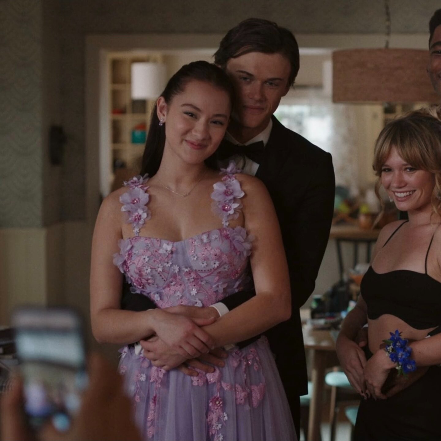 By the end of Season 1, Belly had already stepped into the spotlight with her Aperol Spritz Orange top and biker shorts, and later, her dreamy white debutante gown – her first brush with sophistication. Season 2 carried that momentum forward with floral blouses, feminine tops, and playful sweaters that felt effortlessly cosy yet chic. Her lavender prom dress sealed the shift, a soft but striking look that reflected her growing sense of self.