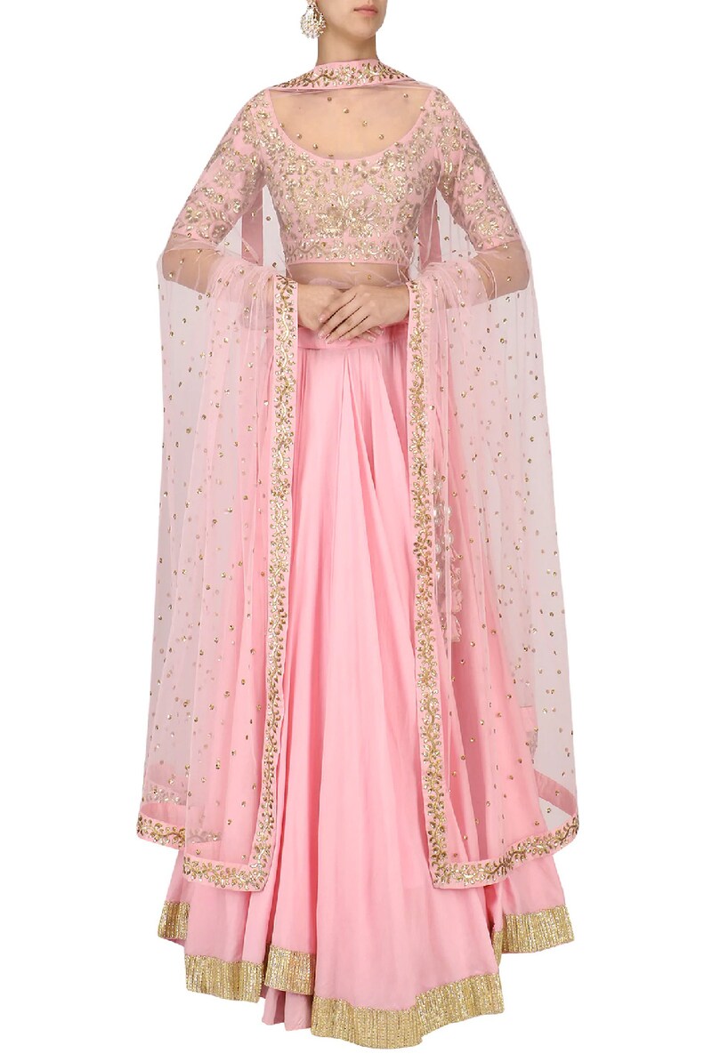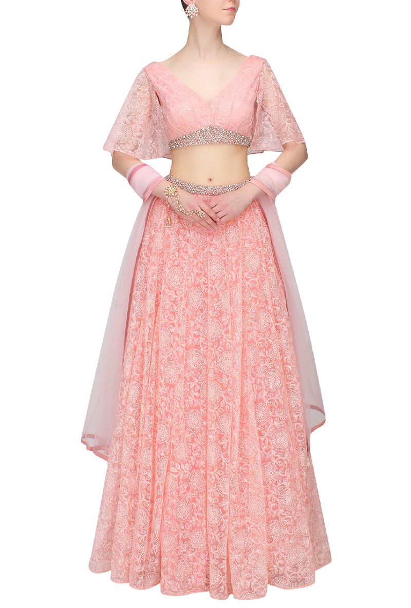 Pragya incites the perfect charisma with the blend of radiance and poise. Walk down the aisle as the maid of honour wearing this candy pink crystal embellished lehenga by Pernia Qureshi for an awe-inspiring entrance.