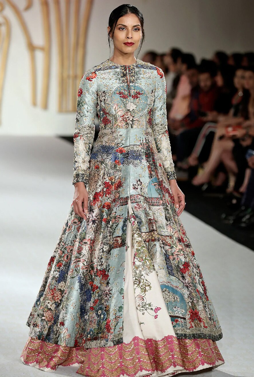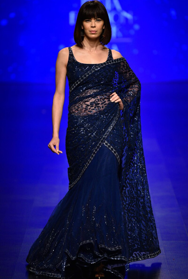 Who better than the original diva, Madhuri Dixit to look up to for a ‘how to look elegant’ masterclass. This showstopper midnight blue creation by Rabani & Rakha is graceful and attention-commanding all at once. Doll up in the look for a sangeet-cum-cocktail party theme to groove like a diva all night.