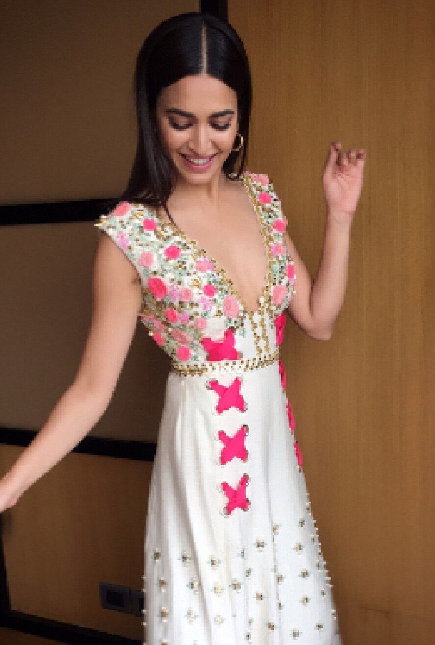 The ever-radiant diva, Kriti Kharbanda spun an eye-pleasing soiree look that is sure to entice the bevvy with a cheery glamour. The dewy sheen popped with the brightness of pink and a gold accented bling makes this Papa Don’t Preach jumpsuit a perfect choice for a cocktail night razzmatazz.