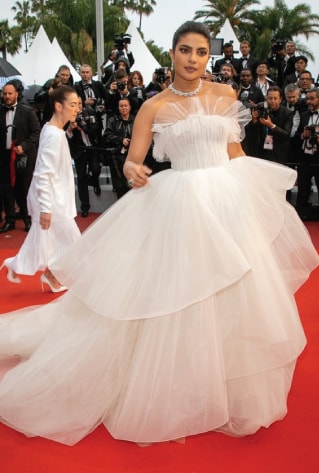 Descending upon the French Riviera after lustrous looks at Met Gala, Priyanka Chopra nailed her debut appearance at the red carpet. Flaunting her legs with full-cut slit, she adorned a glittering Roberto Cavalli number paired with Chopard jewels contributing more bling to the glitz and glam of the fiesta. Her second whimsical appearance in a voluminous tulle gown by Georges Hobeika deserves to be archived as a classic moment at Cannes. Finishing her look with dainty Chopard jewels, Priyanka kept the make and hair understated for a flawless finesse.