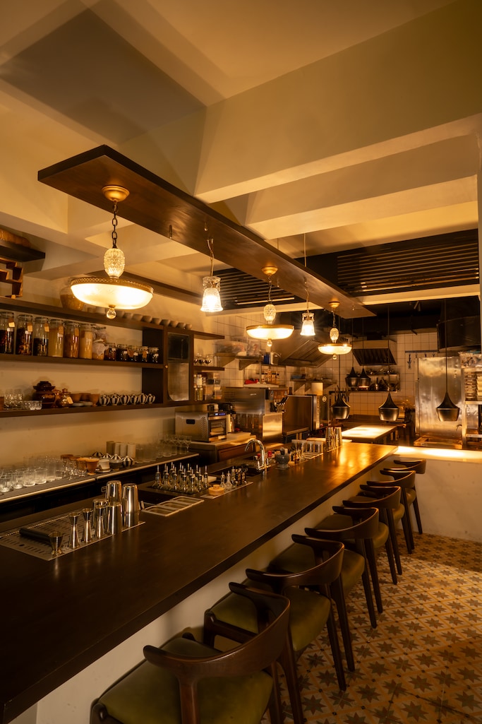 Chakna, by design, exists to enhance the drinking experience, but here it holds its own. “It’s always a strong supporting ally to the drinks,” Rao explains. Pairings are intuitive, shaped as much by narrative as by flavour – whether it’s the sharpness that cuts through a spirit or a regional reference like eating pickle alongside toddy in Kerala. The dialogue extends behind the scenes as well. Food and cocktails are in constant conversation, with one influencing the other. “Sometimes a dish inspires a cocktail, sometimes it’s the other way around,” she says. This collaborative approach ensures that the menu remains fluid, evolving with every exchange between kitchen and bar.
