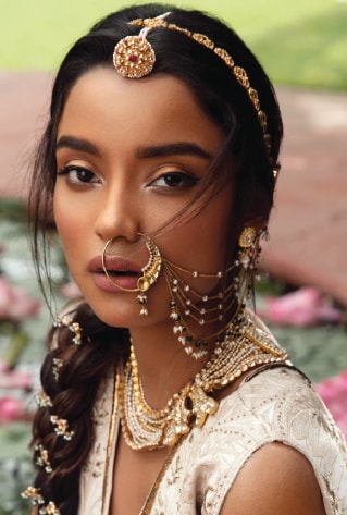 Headpieces are an important part of your bridal repertoire to complete the look. Invest in a dainty polki maang tikka for pre-wedding affairs and a statement piece for grand galas like sangeet night or reception soiree while a beautiful matha patti piece can be reserved for the big day.