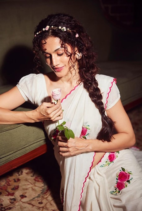 One of the most recent and talked-about looks in Bollywood is Taapsee Pannu’s rose-infused outfits for her latest movie, Phir Aayi Haseen Dillruba. At promotional events, the actress was seen donning silhouettes with roses at the heart of the design, mirroring her character in the film, who adorns the beautiful flower with most of her outfits. Pannu has infused florals in every form—prints, motifs, accessories, shoes and more. If you are looking for inspiration on how to add florals to your wardrobe, Taapsee Pannu’s looks have got you covered.