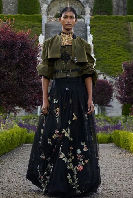 However, the 17th-century venue was not the only historic element in this show. Chiuri was heavily influenced by Mary, Queen of Scots, while designing and conceptualising the collection. The lace on the garments refers to the embroidery Mary made while imprisoned.
