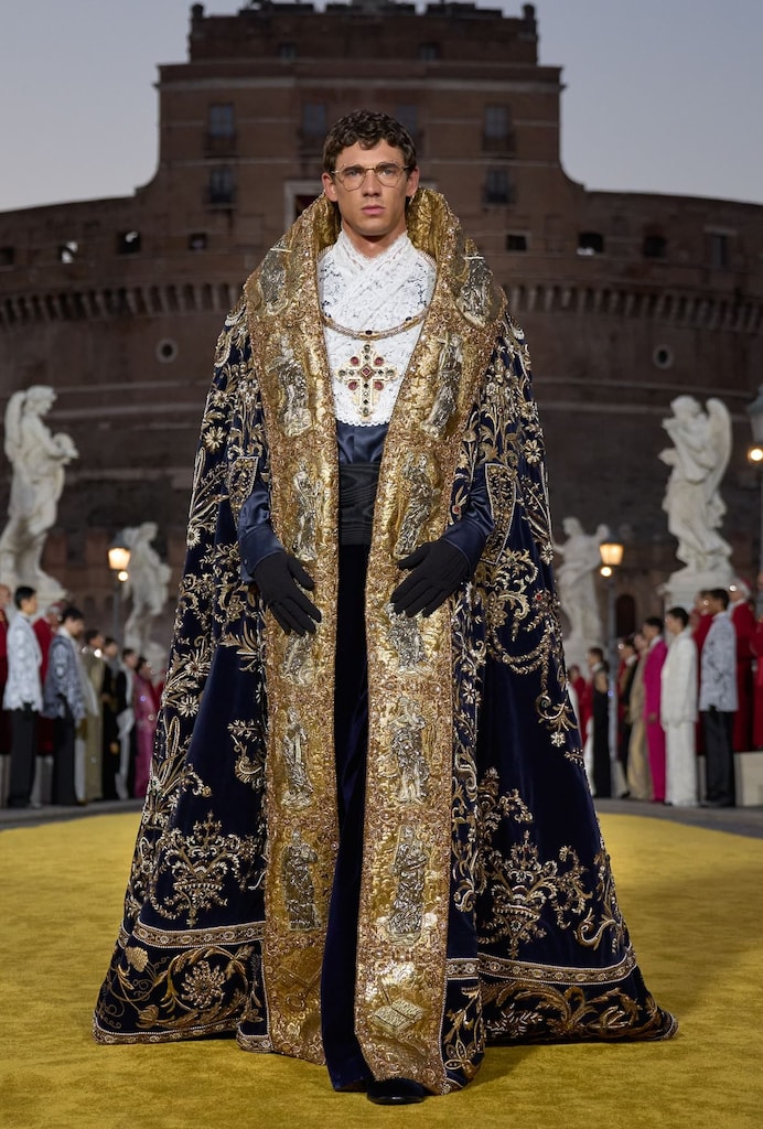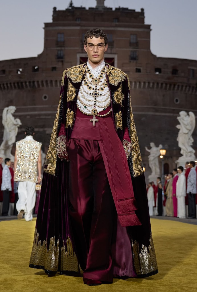 Dolce & Gabbana has long drawn inspiration from sacred Catholic imagery for their collections over the years. For Alta Sartoria 2025, the brand took cues from the rich design lexicon of priests’ vestments, reimagined with couture precision and reverence for tradition.