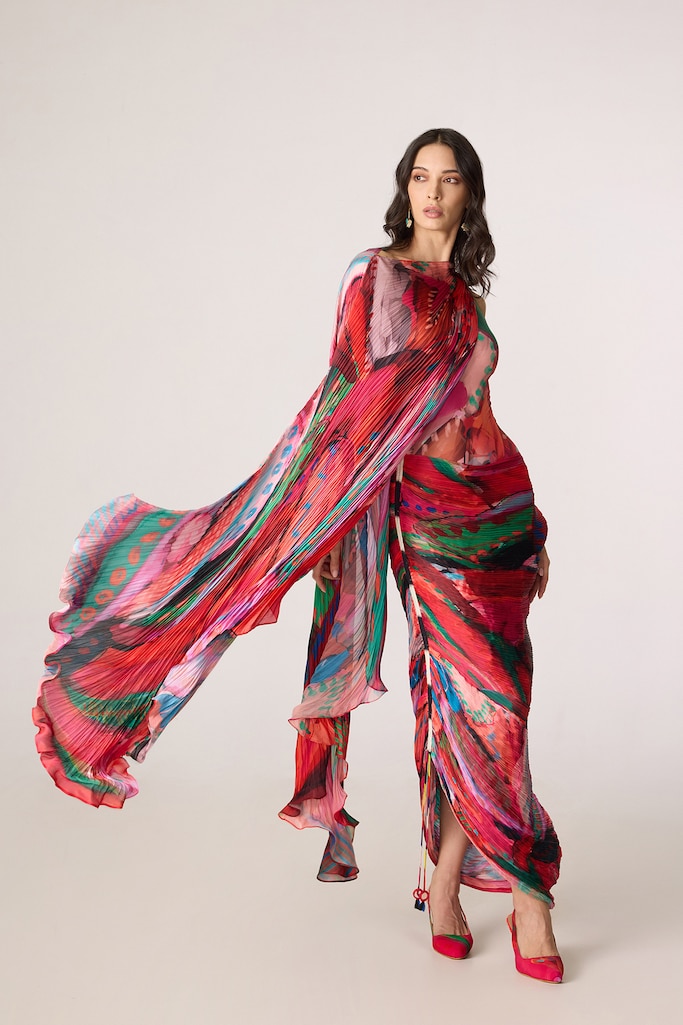 FL: There’s a strong tactile quality across the collection, from micro pleating to layered prints. How important was texture and movement in shaping the overall design direction?