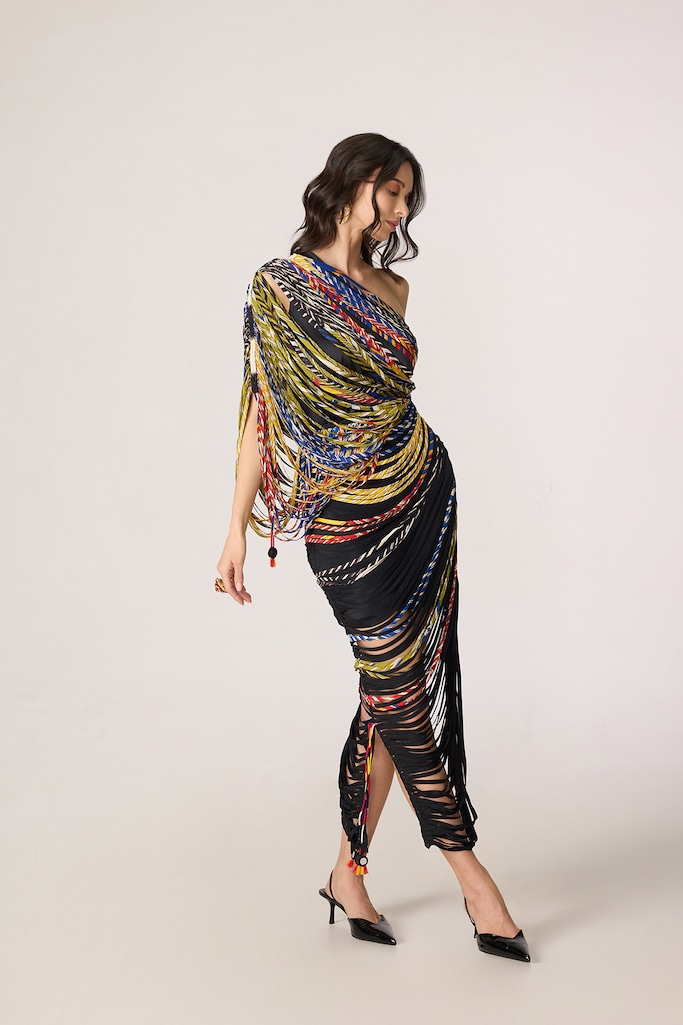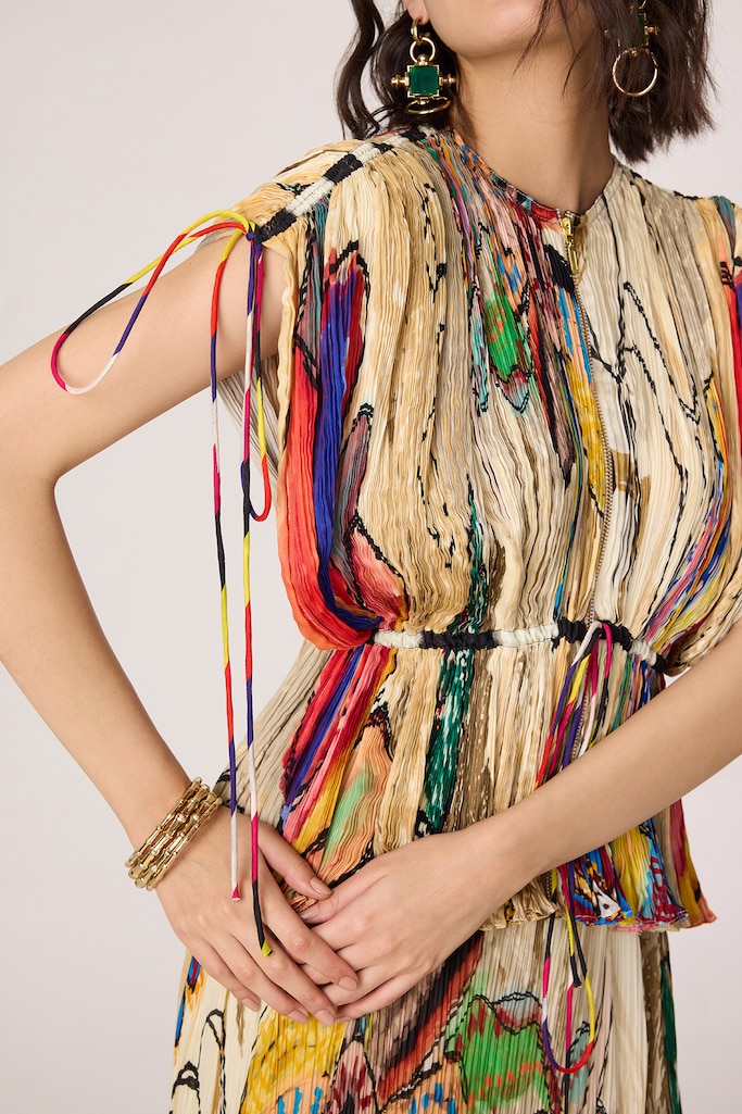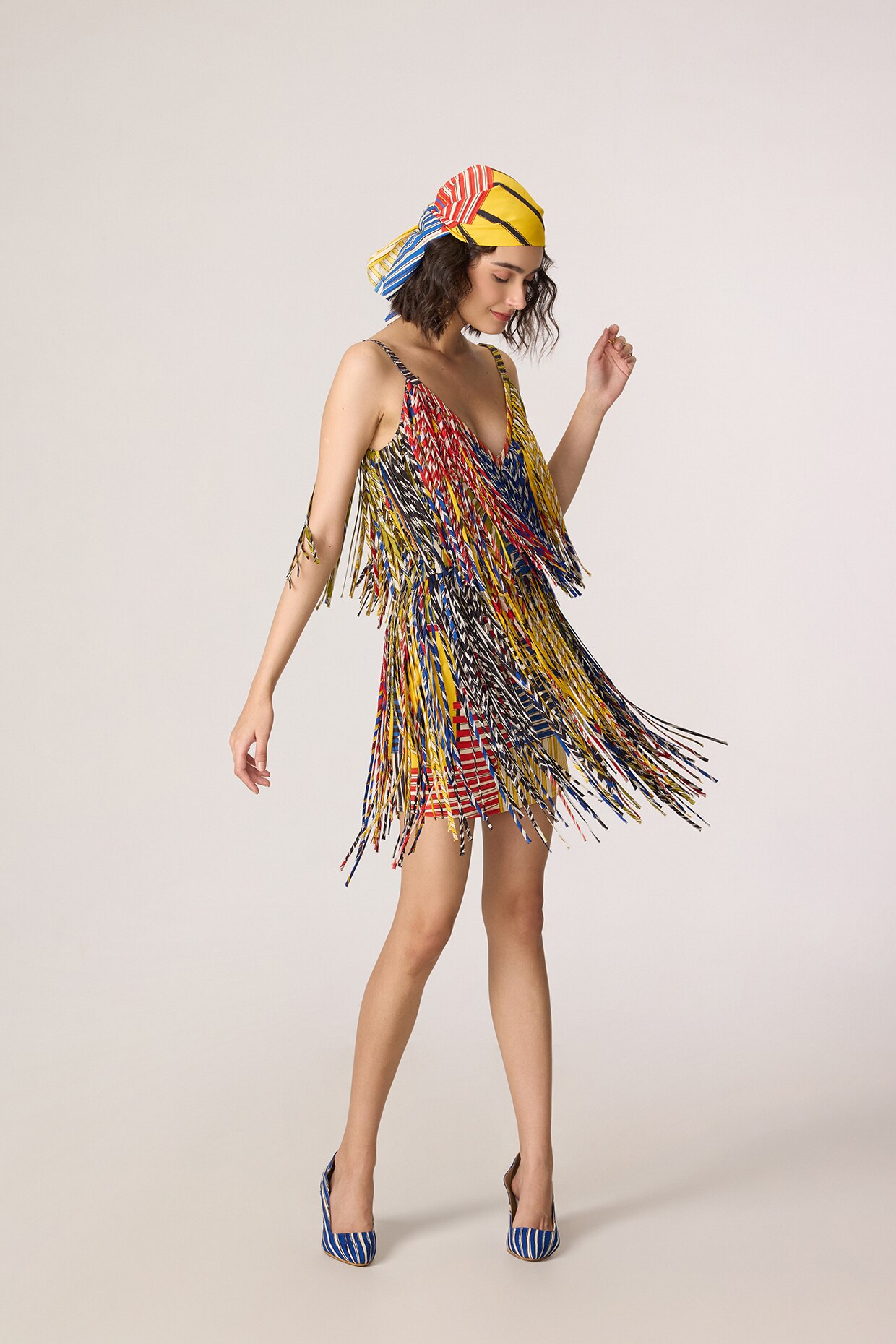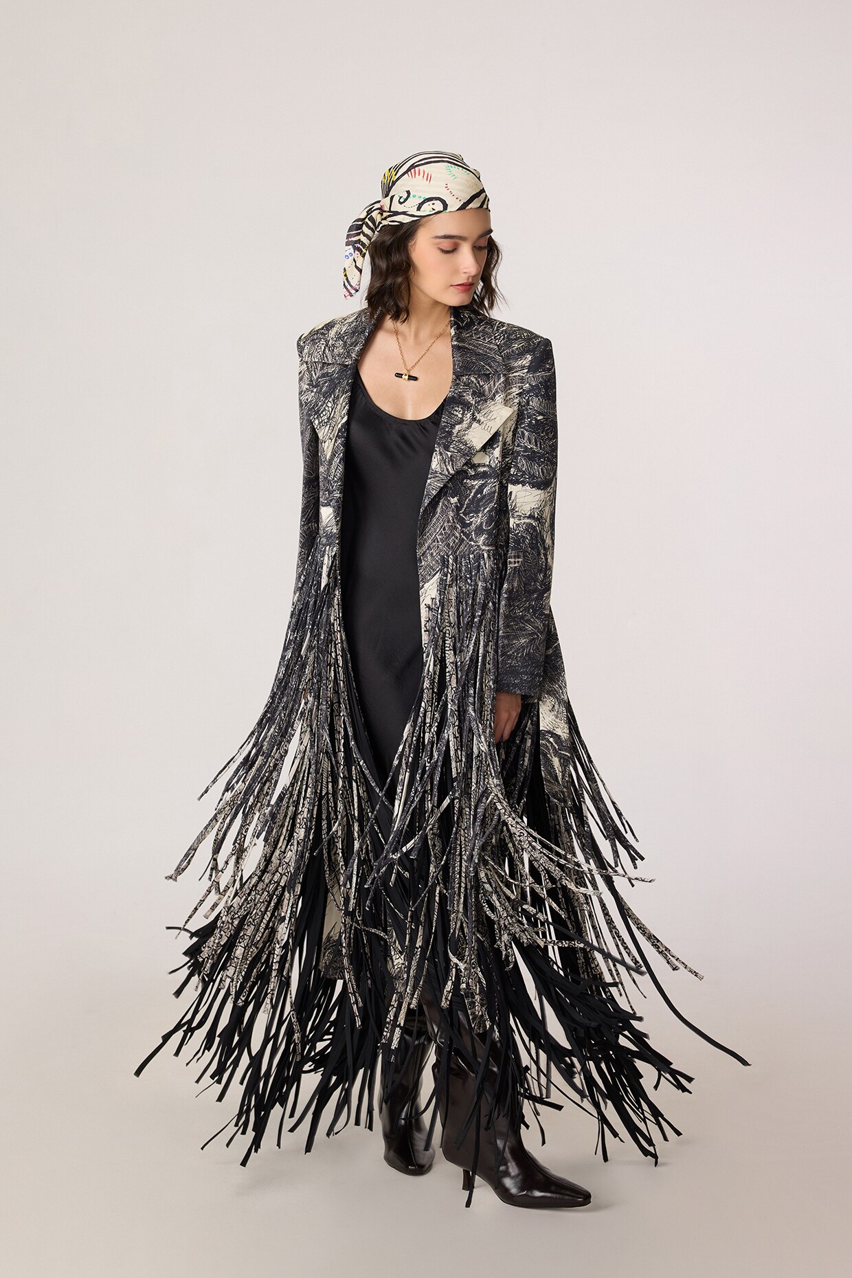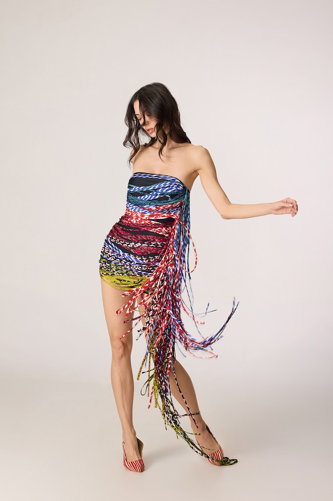 SB: Texture and movement were central to how the collection evolved. In a season that’s so visually driven, we wanted to bring in a sensory dimension, something that feels as good as it looks. Techniques like micro pleating, layering, and fabric tassels allowed us to create depth without heaviness. Movement, especially, was important – it softens the structure of prints and makes the garments feel more alive and fluid. It’s also very much in line with how we see summer dressing – easy, breathable, and dynamic.
