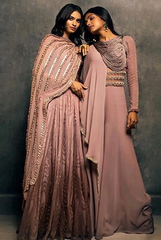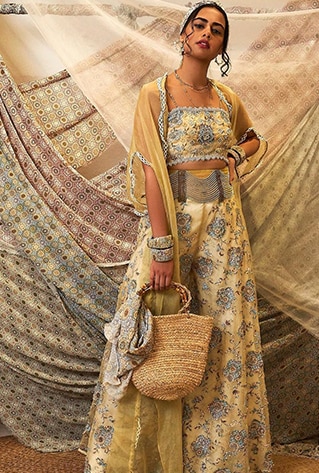 With her affinity for layers and textures, Ridhima Bhasin constructs the classic staples of Indian festivities with contemporary styling. Boasting of the perfect blend of ethnicity and modernity, light and fluid pre-attached dupattas go perfectly with high-octane shenanigans and dancing while her wispy capes shine out like an extra layer of grandeur to make you the belle of the ball. Statement blouses are big this season so if you’re looking to take the drama high-octane, a perfect power play of drapery is all you need. Customized with pre-draped dupatta extensions, a Ridhima Bhasin anarkali is the most-loved piece from her repertoire.