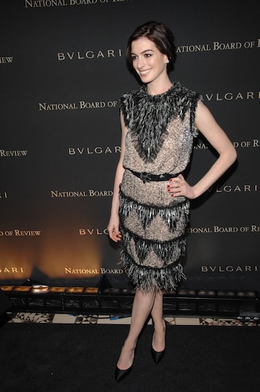 Talk about pure elegance! Hathaway embodied under-the-sea magic in this aqua Atelier Versace gown. She definitely made a statement in this strapless mermaid gown at the Venice Film Festival while promoting her 2008 film, Rachel Getting Married.