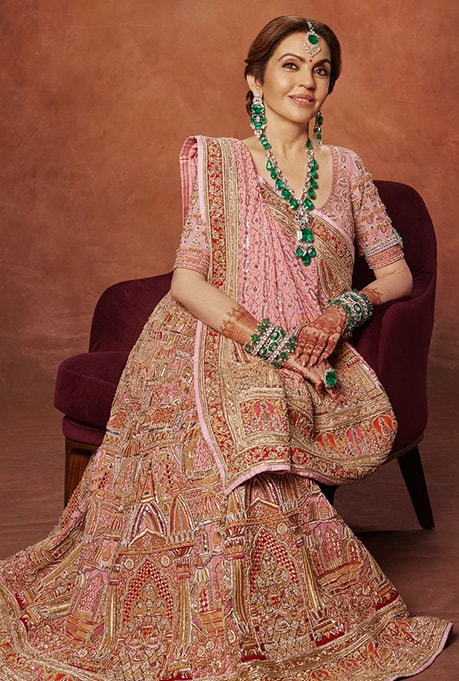 The Ambanis and Merchants caused a stir with every ensemble they wore throughout these 3-day festivities. From timeless pieces narrating a tale of tradition to the most eye-catching heritage-infused jewellery that exuded extravagance, the bride, groom and their families turned heads at every function leading up to the big moment. Here’s a list of what the Ambanis and Merchants wore for the wedding of the year.