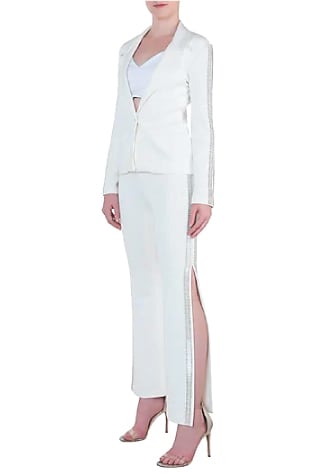 When unravelling the fine sartorial essence of the blazer, it camouflages as a glamorous charmer in the most sophisticated way. Think an ornate piece layered with a slip dress to accentuate your figure for a swanky dinner. Since pantsuits have blazed the path of red carpets, it’s glam quotient is simply unquestionable. Nothing eccentric than a pastel blazer thrown over a satiny camisole- that’s lounge to lustrous right there!