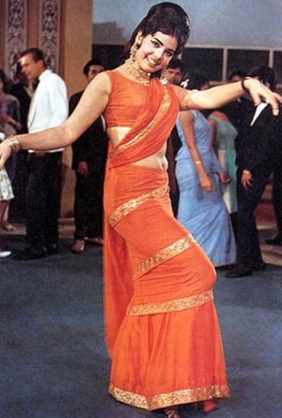 Hopping out of our seats and breaking into a dance every time Aaj Kal Tere Mere Pyaar Ke Charche starts playing is a highlight of almost every Indian family party! Mumtaz though was the highlight of Bollywood fashion in the 60s. What the world now knows as a ‘saree gown’, was first done by her in a sensual yet playful orange masterpiece! The iconic pre-pleated, low-waist saree adorned with golden gota borders and a frilled hemline redefined the traditional 6-yards. The song demanded a lot of movement from Mumtaz, who was known for her effervescence. Hence, costume designer Bhanu Athaiya designed this pre-draped saree with a zip on the side for ease & convenience. The look inspired a lot of Bollywood actresses and led them to recreate it for years, breaking the charts even today.