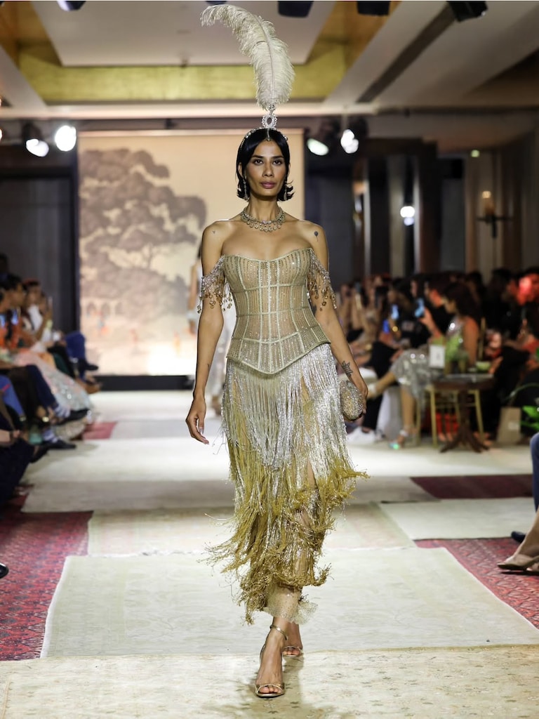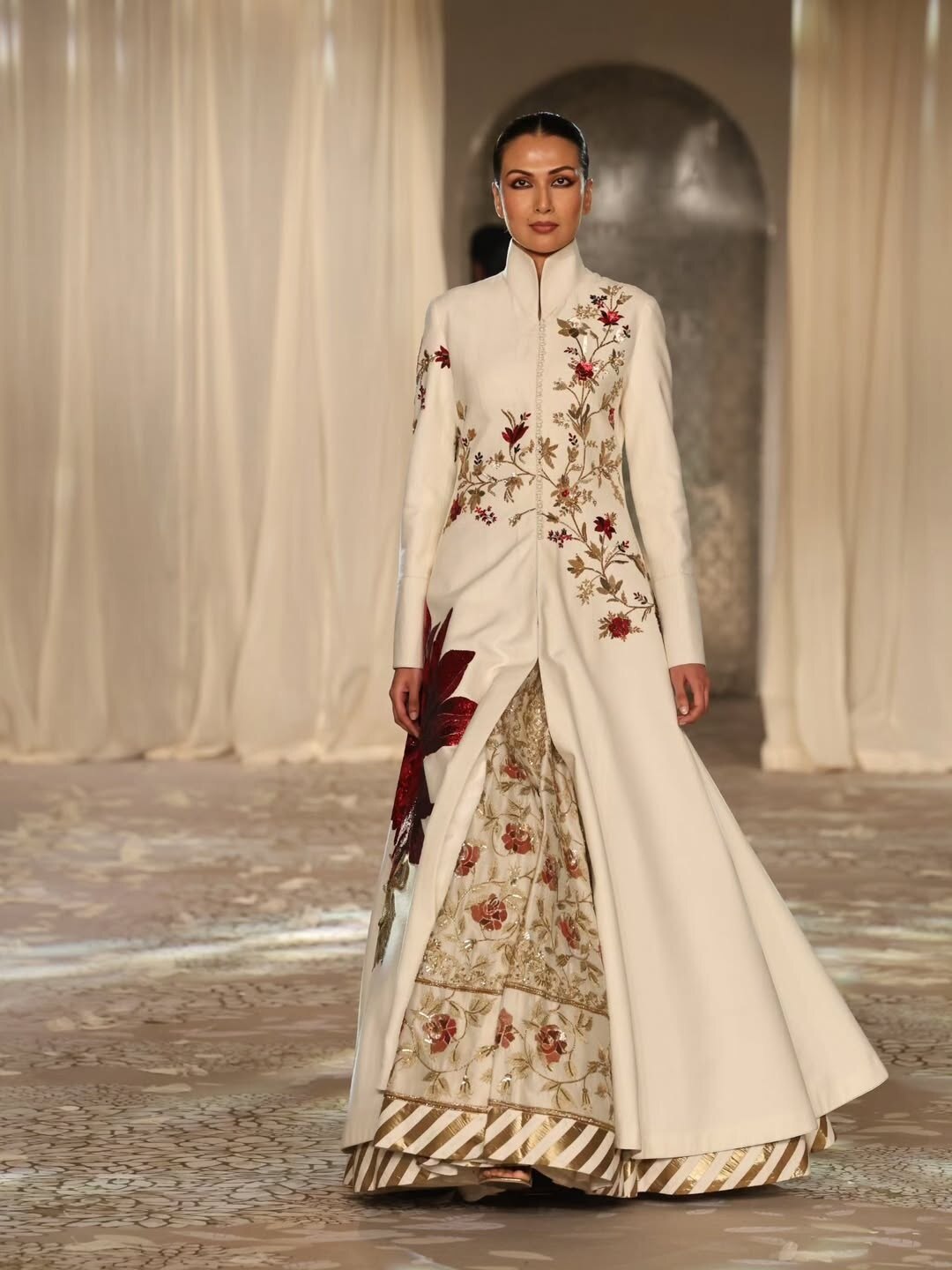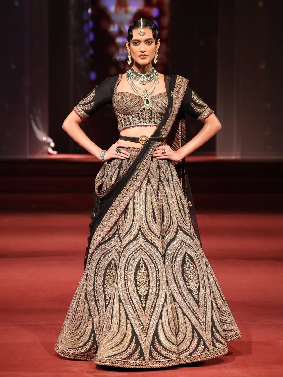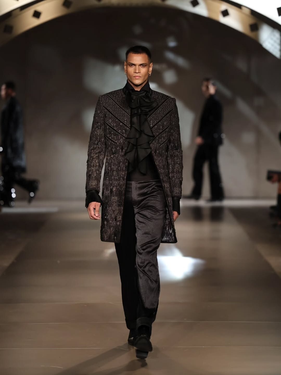 Closing the week with masterpieces reflecting the grandeur of Indian couture, JJ Valaya showcased East, a collection inspired by Oriental art and architecture, seamlessly confluenced with textile traditions. Featuring kimono-style overlays, brocade lehengas, and structured jackets, it was a majestic finale rooted in cultural crossover and evolving couture.