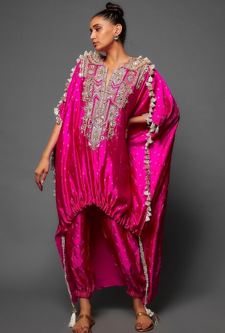 The brilliant designer Payal Singhal’s world reflects a global boho-chic aesthetic while maintaining a deep-rooted connection to Indian heritage. Picture yourself in tube kurtas paired with shararas, high-low kaftans, jogger pants, and dhoti sarees that embrace a chic and playful aesthetic. Her vibrant occasion wear breathes new life into tradition, infusing fringes, stylish hems, distinctive slits, and asymmetrical cuts that cater to the tastes of the millennial brides-to-be and bridesmaids.