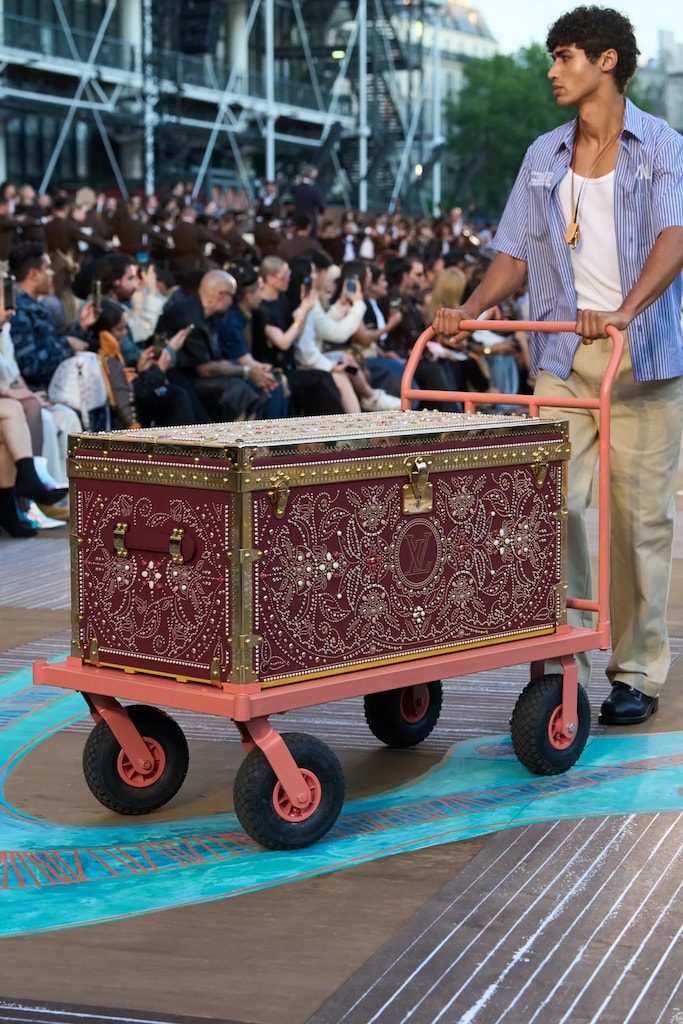 Louis Vuitton’s SS’26 show unfolded as an ode to India – from a snakes-and-ladders-inspired stage to a soundtrack composed by the maestro A.R. Rahman. But the journey began long before the runway, with the LV team drawing inspiration from the bustling streets of New Delhi to the regal palaces of Jodhpur. Indian influences were woven seamlessly into the collection, surfacing in crystal-studded trunks, handbags adorned with elephants and palm motifs, and silhouettes reimagined with heritage accents.