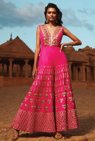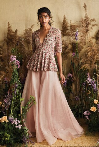 Move over your traditional shararas, you should be reserving this charismatic Ridhi Mehra number for your next festive evening. From the encrusted floral deets to the wispy flair of the pants, the ensemble is an exquisite formula for a super liked #OOTD on Instagram.