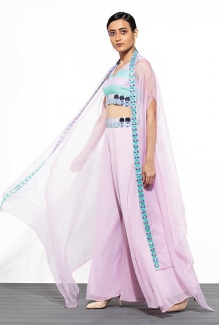 Nothing bewitching than a hint of pastel themed grids on your Insta profile! The pastel colour combination of this Nitya Bajaj cape and the top-palazzo set is a treat to sore eyes. You’re sure going to papped as you sashay the wedding brunch in this stunner.