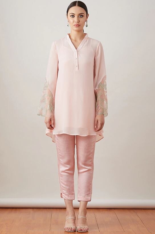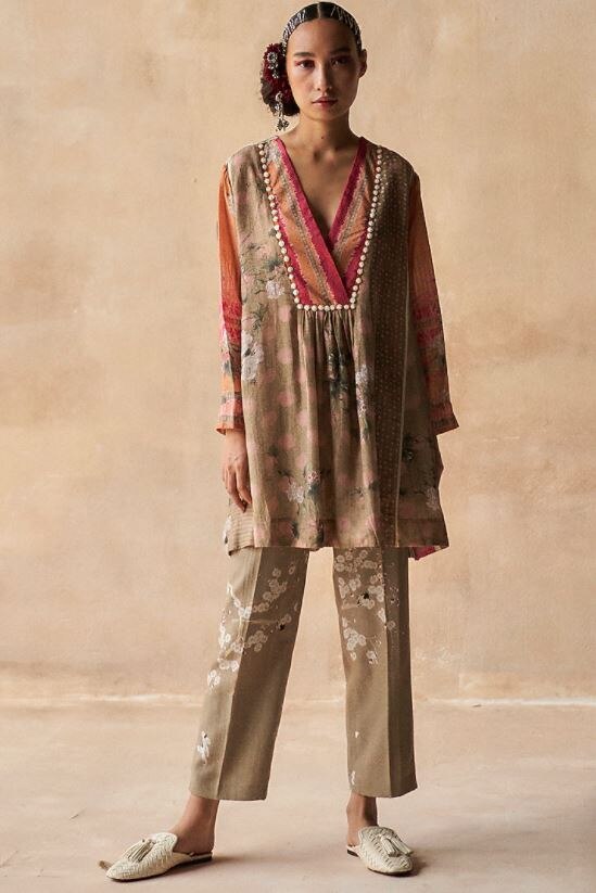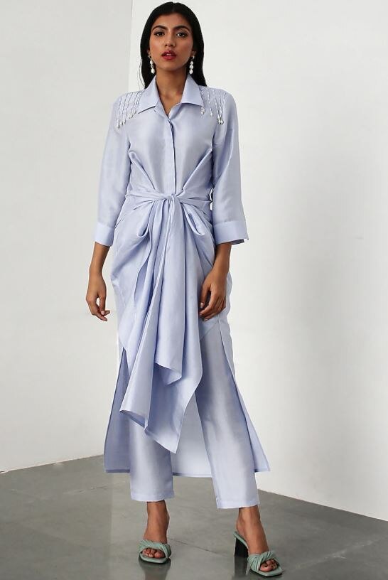 Focusing strategically on experimental cuts, the silhouette has also received a facelift with indo-western aesthetics. Think one-shoulder style kurta to inject veritable novelty into the demure kurta. Thought of wearing the kurta as a jacket. A collar to the angrakha silhouette will slot easily into your offbeat layering game.