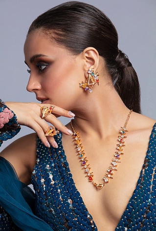 As a natural calming agent, amethyst is known to relieve anxiety and elevate your mood. Keeping the healing properties of the violet gem in mind, invest in this standout amethyst necklace from Tarun Tahiliani to regulate your aura and up your style game!