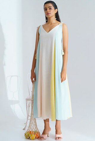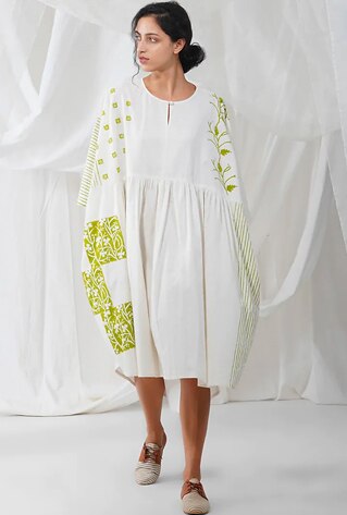 Boasting seasonless and wear-forever quality khadi can capture the essence of sunny days in chic ways. The Right Cut interprets drawstrings and wide necklines to imbibe a flirty attitude in the dresses and co-ords. If you seek both practicality and pretty appeal, the brand has ideal offerings.