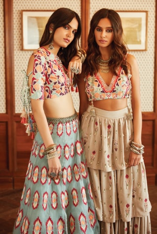 Voluminous lehengas with tiered or layered accents are perfect for events that need you to stay mobile. A billowy flare is simply a feast to sore eyes when you sashay through the gaieties. From Anita Dongre to Papa Don’t Preach by Shubhika designers have officially given bouncy volumes a nod of their approval. Armed with flirty femininity, layered lehengas lend you that attention commanding appeal instantly. Inject some playfulness to your festive wear wardrobe with layered lehengas to channel your millennial charm.