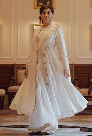 Taapsee Pannu is coveting top-to-toe white and it never looked dressier! She chose Priyal Prakash’s understated charmer to channel her elegance. Draping yourself in a wispy stark white saree is the easiest way to attract attention.