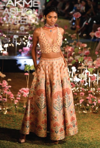 If you’re hosting the wedding at a palatial venue, channel your inner princess choosing a lehenga enriched with traditional embroideries. An Anarkali lehenga silhouette is perfect to infuse an old-world charm. Think tonal embroideries and monotone ensembles to keep the refined taste intact while you mint compliments and save money.