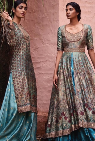 Pastels like icy mints and blush hues manifest a timeless essence. Complement your bridal glow with a pastel lehenga detailed with tonal embroideries for a pre-wedding get-together. Powder blue, jade or a sage green shade will dress you up like a belle in a trendy and versatile number. The look will manifest the best of both worlds- a feast for the eyes and a nifty move on the budget.