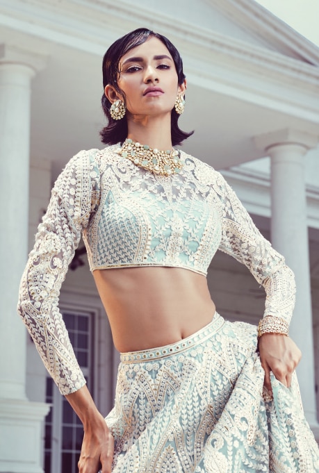 In the culturally crafted realm of Indian couture, the designers have kept true to their tradition of experimenting with lehengas. Staying away from gowns in the bridal wear space, the designers have been synonymous with several lehenga tweaks, morphing them into gown-like silhouettes. From playing with lengths and proportions of lehengas, to adding drapes and long embroidered veils inspired by their trips to the Taj Mahal, the designers challenged the perception of the age-old lehenga. The designers brought well-defined cuts and contours to the Indian couture realm lending the classic Indian bridal wear a universal language of couture.