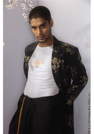 Representing Winterfell through the rendition of trees, the Ravens and dire wolves, the collection is designed for both men and women. The colour palette of the collection is Black and white with hints of red that goes with the labels aesthetic. The collection includes silhouettes with fuss-free constructions, that are extremely comfortable and age versatile and can be worn around the world. And that’s not all! Masaba has also created a jewellery line. Inspired by the spectacular gardens, medieval palaces & diabolical war, this collection is dominated by elements like the kingdom’s sigils, filigree leaves and armours that make the collection stand out.