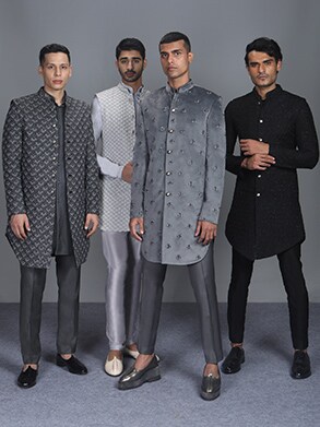 Here’s where Kunal Rawal came in with his India Couture Week collection titled Hide & Seek. The digital edition of the show saw these pieces shot on the steps of the Asiatic Library, symbolising heritage and function at the same time. What was special about these sherwanis, bandhgalas, kurtas, and jackets was the fact that they can later be treated as separates paired with other items right out of your wardrobe. The collection is fluid when it comes to geography and seasons, and put the designer’s love for textures & mock layering into focus. ‘Deconstruction’ forms the crux of Hide & Seek, and we’re all for it.