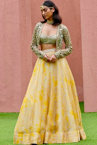 Curating modern pieces for your heirloom is all about tapping into every ensemble’s ability for versatility and time-transcending relevance. A jacket lehenga ensemble can reflect your clever style. Arpita Mehta teams a wispy lehenga with a mirror-clad bustier and jacket that can be reprised as separates. Rohit Bal’s ombre shaded anarkali offers the perfect Reception dinner look that can swing into your first Karwa Chauth and take a special spot in your heirloom.