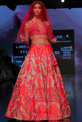 Long trailing veils have been following the bride on the aisle for ages in the West. The iconic statement made by Katrina Kaif and Alia Bhatt adorning the sari with a floor-grazing veil has added the most refreshing trend to the bridal pin board of 2022. Invest in a beautiful sheer veil to incorporate the charm of a white wedding with your traditional nuptials. Make a momentous entry by choosing new-age veil-clad lehengas by Varun Bahl. For a rooted statement, Tarun Tahiliani’s top-to-toe red iteration signifies a token of history as well as global influences.