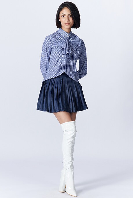 If you’re bound to a formal dress code, here’s tangible proof that it couldn’t always be boring. Trade your pencil skirts and button-downs for new-age ready to wear shirts and pleated elements to make your look dressier. You can also put a daring spin to the day with a crop top on casual Fridays.