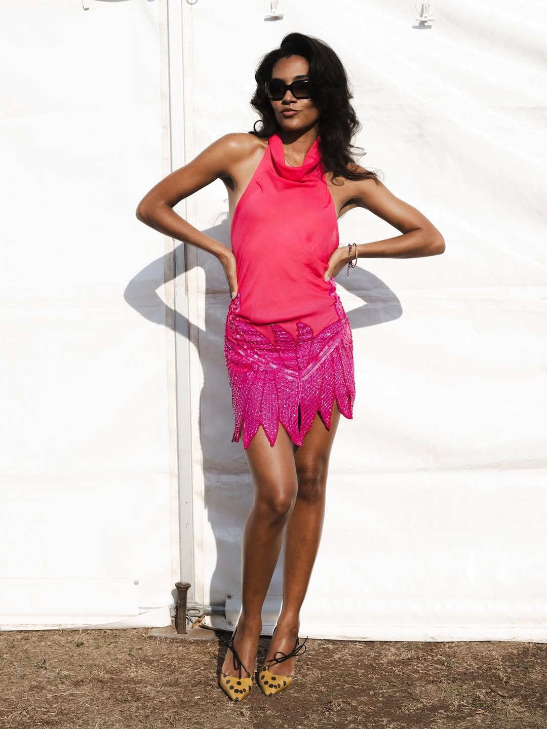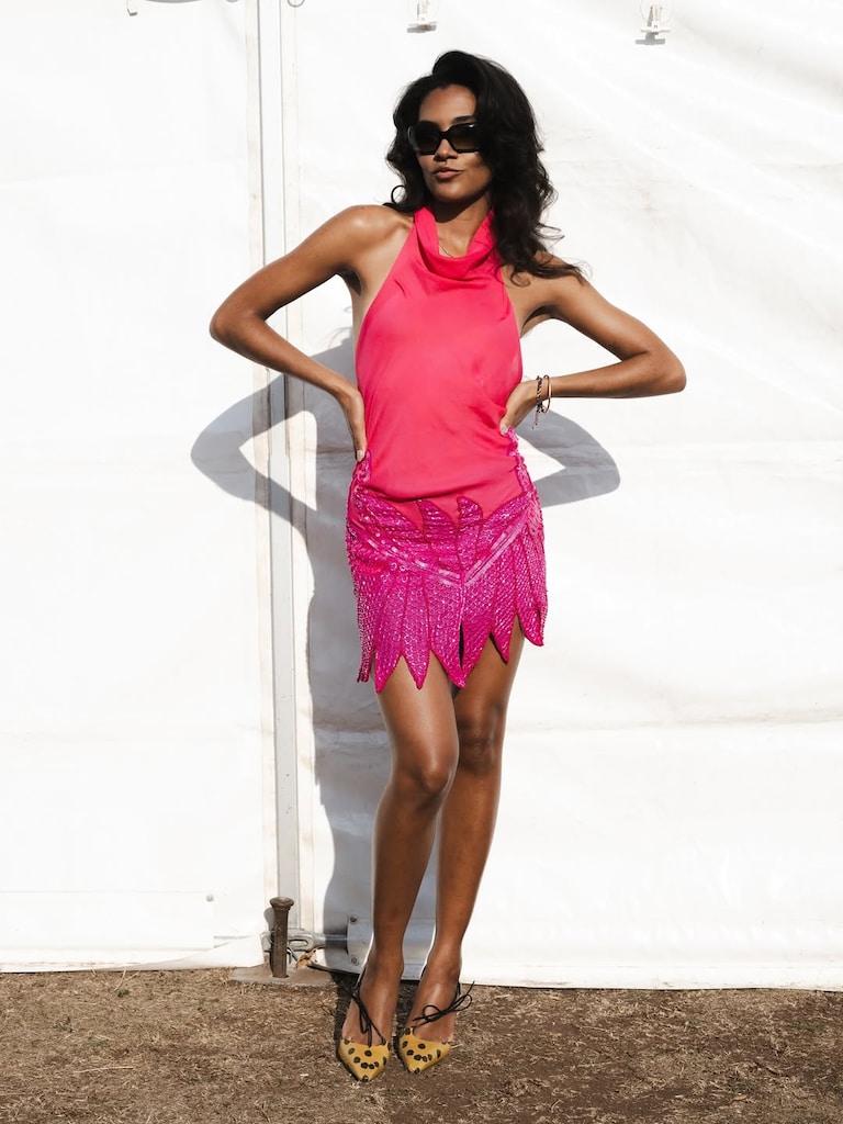 When it comes to Dean’s signature style, she’s a true dress devotee – embracing every silhouette imaginable, from mini to maxi, halterneck to scoop neck, and everything in between. Yet, her style is anything but predictable.