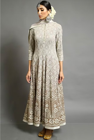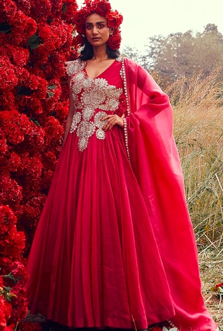 A wrap-around modest neckline and voluminous flare sum up all elements of this royal heirloom ensemble. Popular court wear from the 1800s, the angrakha narrates the story of aristocracy and royalty. Bhumika Sharma serves a throwback-worthy statement with a floor-length creation, in an eye-pleasing red tone, offering a perfect look if you’re having an intimate Roka ceremony on Diwali. Shyam Narayan Prasad creates a lightly layered ensemble that boasts of old-world richness and trans-seasonal charm. On the other hand, Bairaa’s Mughal-inspired lexicon added over the ancient attire makes it ideal for auspicious rituals at home and the traditional Diwali feast that follows.