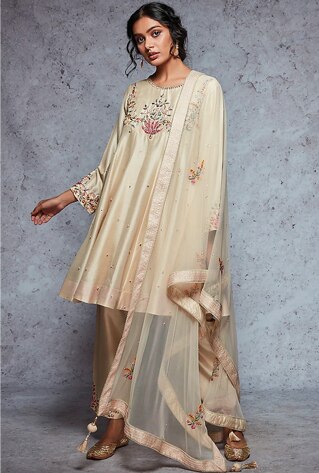 If there’s a carefully preserved kurta that has been passed down to you, there are chances it would be a quaint kalidar. Abhishek Gupta makes a case of a sartorial treasure with a Parsi embroidered kalidar ensemble that can be a part of your celebrations on Diwali as well as an upcoming wedding you would have RSVP’ed to. Ajiesh Oberoi’s take on the kalidar can be seen with a shorter hem and wide-leg pants, offering something refreshing from what we’re accustomed to, yet reminiscent of an old-world charm.