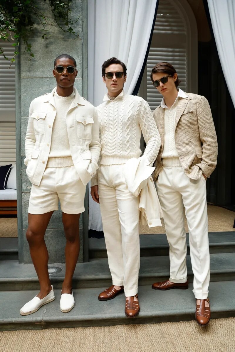 The showcase leaned into something that Ralph Lauren does best: precise tailoring, understated luxury, and a wardrobe conceived for the modern man. Anchored in nautical references, the lineup featured immaculate blazers, refined linen field jackets accented with