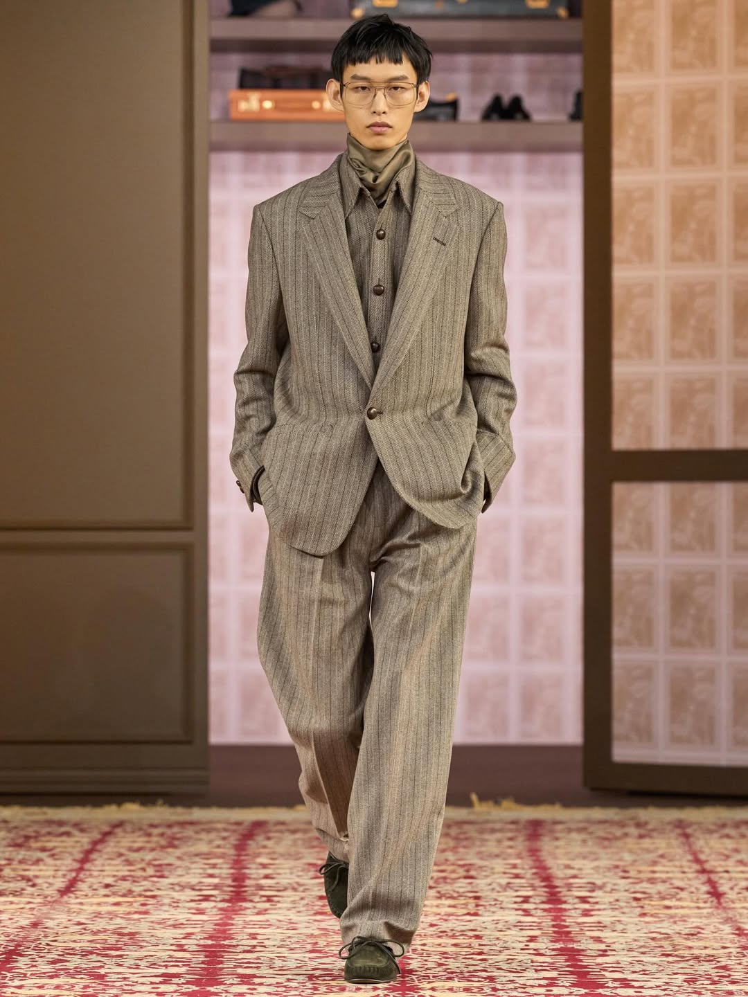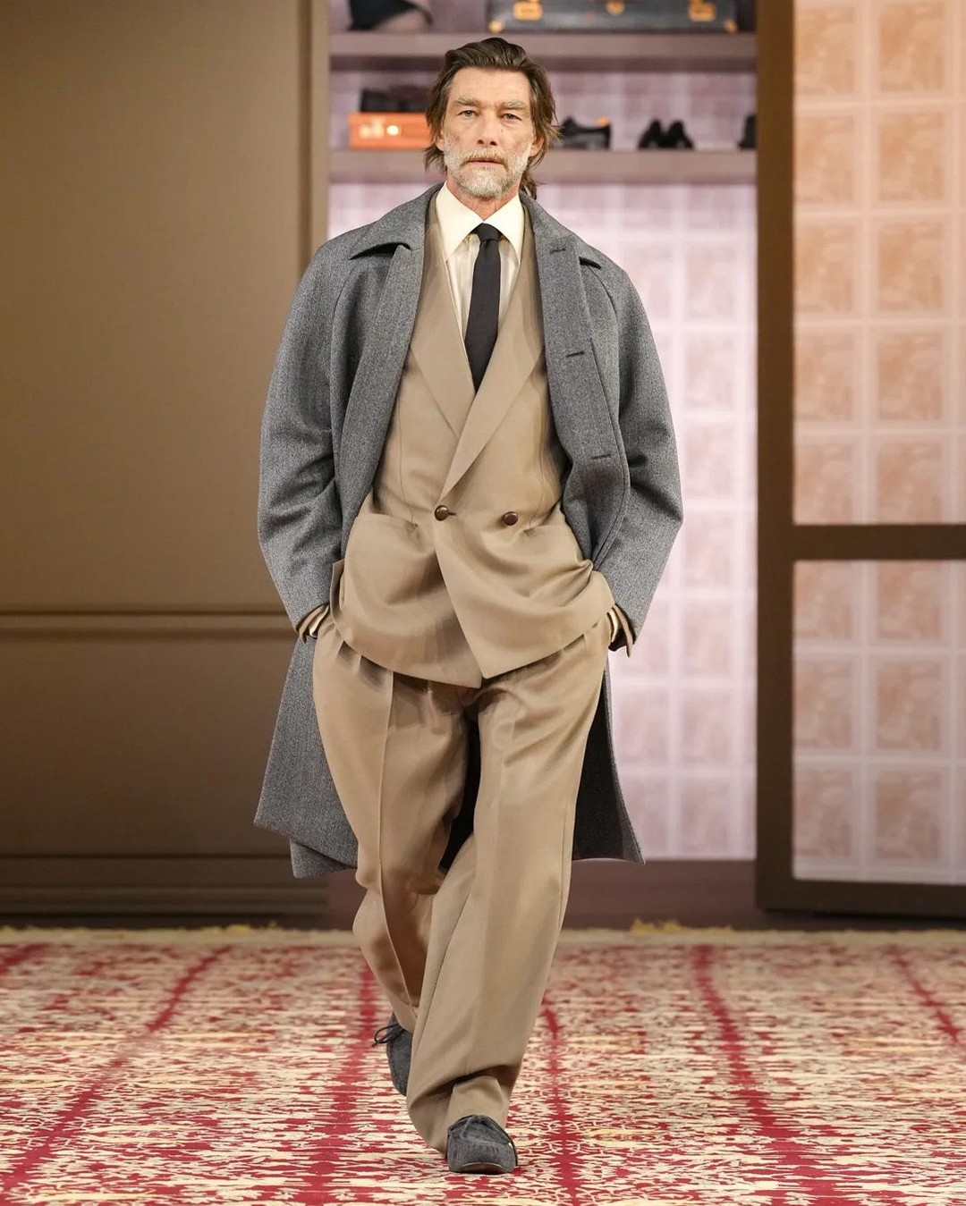 Double-breasted coats were styled with relaxed precision, layered over shirts stripped of excess detailing, while padded cardigans introduced a sense of warmth and lived-in comfort. These pieces felt intentional – designed to carry movement. In transforming classic tailoring into something more tactile and personal, Zegna reinforced its vision of menswear as an extension of life lived thoughtfully, where tradition adapts quietly to the present.